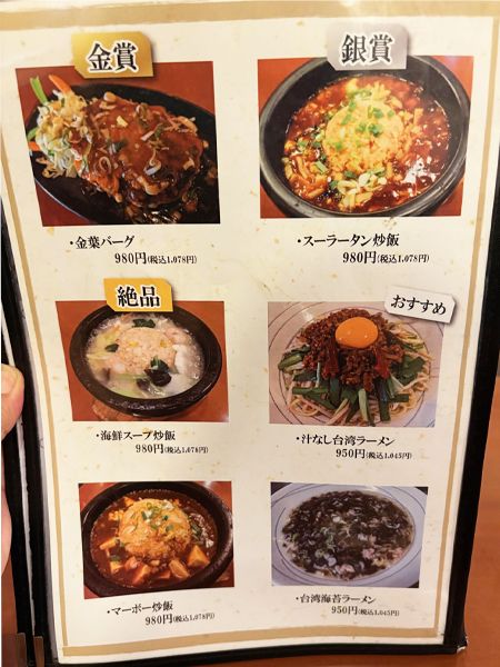 こちらで人気なのは、なんとハンバーグ。横浜の商店会で催された「ガチハンバーグ」というイベントで、みごと金賞を取ったとか。そんな変わり種もある同店は、チャーハンの種類も豊富です。