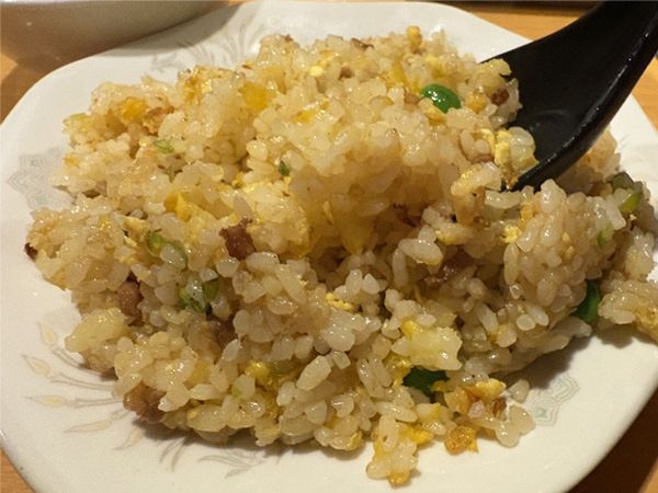ひと口食べれば、ご飯はパラパラの食感。程よく油がコーティングされていて、そのうまみがご飯と溶け合ってうまみが口の中に広がっていきます。チャーシューは小さく刻んであるので、卵やグリーンピースと一緒にパクリと食べられます。いっぺんにいろいろな具材が食べられるのは、魅力的でした。