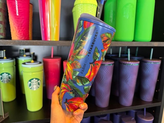 今回、特に目をひいたのが、ブラジルのファッションブランド「FARM RIO(ファームリオ)」とスターバックスのコラボレーションアイテムです。ブラジルの陽気な雰囲気をファッションに取り入れたFARM RIOはアメリカでも人気を博しており、このコラボは人気なんだそう!