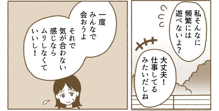もともと友だちもそこまで多くないし、ママ友もいらないと考えていた私。知らない人と会うのは疲れますが……集まるのを提案された日には特に予定もなかったので、OKすることにしました。しかし……。