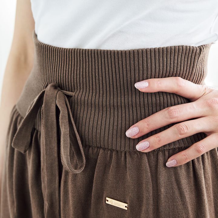 足首を暖める長めのリブはくしゅっとしたりアレンジ自在。
