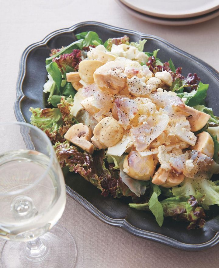 生ハムのような塩味とうまみを味わうごちそうサラダ。