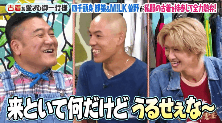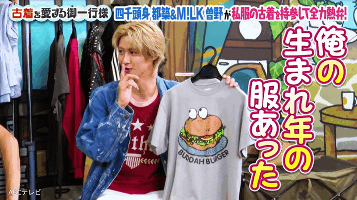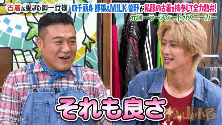 “ビジュいいじゃん”のフレーズでお馴染みの5人組ボーカルダンスユニット「M!LK」の曽野舜太と、お笑いトリオ「四千頭身」の都築拓紀は、実は大の古着好き。そんな2人が、共演者のトンデモ発言の連発にキレた……!?