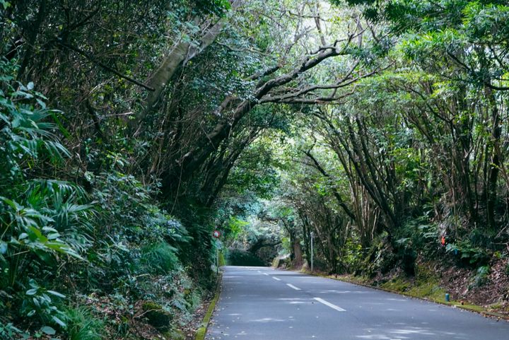 島内には、自然の力を感じられる絶景スポットがたくさんあります。火山灰で真っ黒な砂が広がる「砂の浜」や、バウムクーヘンのように積み重なった地層が見られる「地層大切断面」。そして大きな根が印象的な「泉津の切通し」など、島の歴史を感じることもできます。