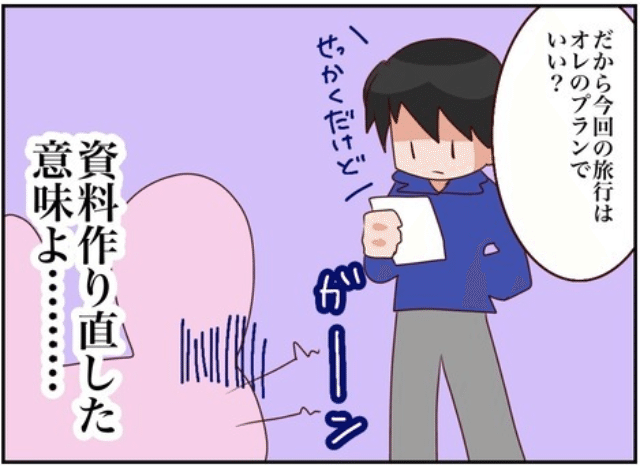 #226 彼女が作り直した旅行のプレゼン資料を一瞬で台無しにする彼氏|モラハラ彼氏