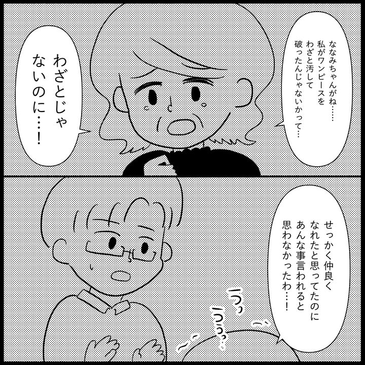 どうやら義母は、自分に都合の良いように息子さんであるまことさんに話をしていたようです。ななみさんのワンピースのことを「安物」と表現したことや、そもそも半ば強引的にななみさんから奪い取ったことを伏せているようですね。