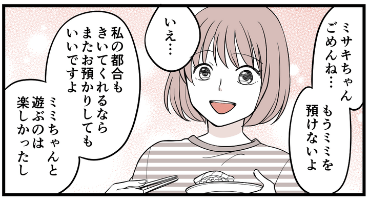 でもミミちゃんがもう少し大きくなって、私の子どもも大きくなったら、ミミちゃんはいいお姉さんになってくれるでしょう。
