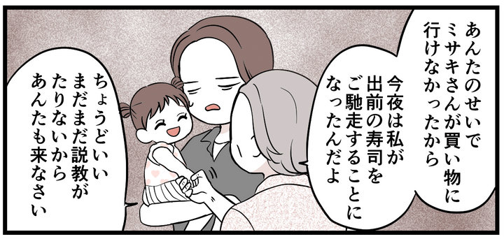 義母は旦那と義姉に「いつまでも実家にいたときのノリでいるんじゃない!」と、一喝してくれました。