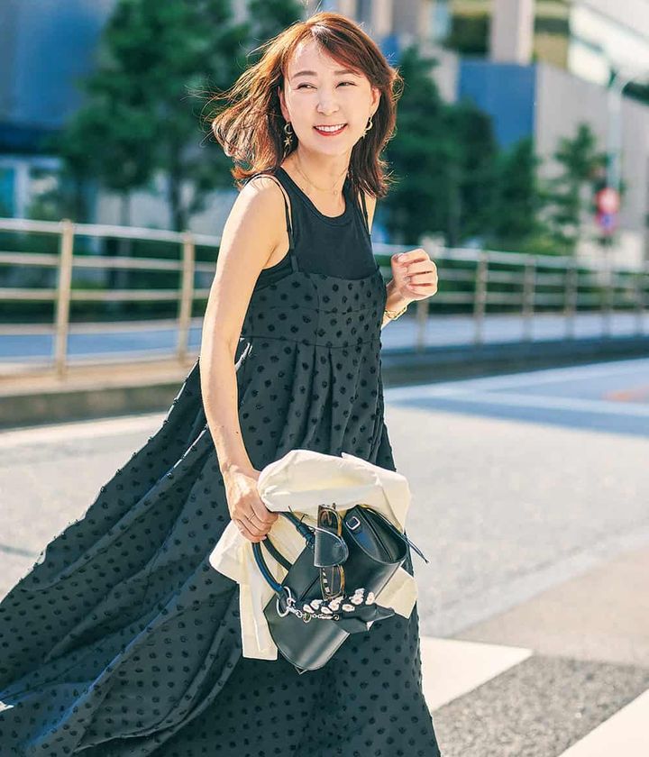 ワンピース(ツル バイ マリコ オイカワ)ジャケット(カデュネ) インナー(ユニクロ)バッグ(ウィルフリー/WILLFULLY)/すべて本人私物