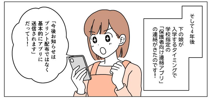 <結局アナログか〜い!>学校の紙プリント量に困惑…連絡がアプリ切り替え「やった!」【まんが】