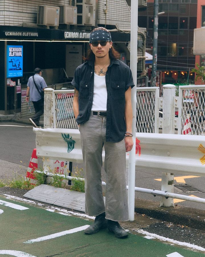 【スナップ】無骨でラフなワークスタイルに、バンダナとサングラスで“アウトサイダー感”を演出