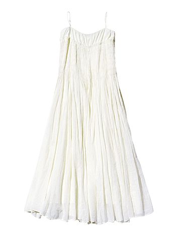 白キャミソールワンピース/エトレトウキョウ 軽やかな薄手なのに透けにくいすそまでの裏地。ギャザーで上半身がぴったりするぶん、重ね着もしやすい。