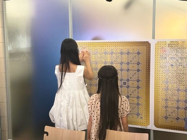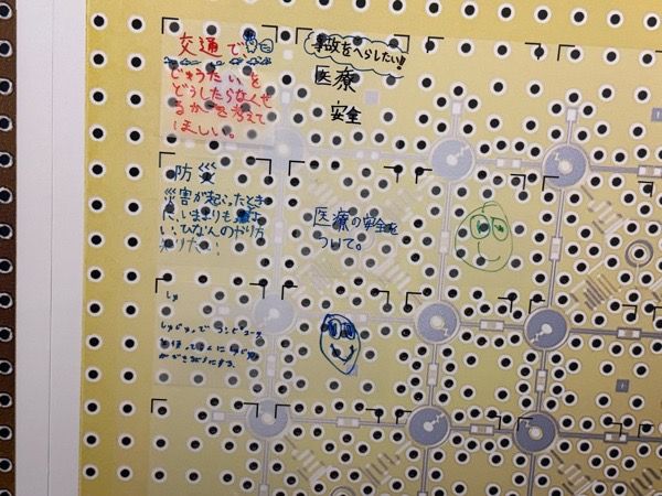こどもたちは最後に自分たちが想像する未来を考えてメッセージを書き、量子ビットチップボードに貼っていきます。