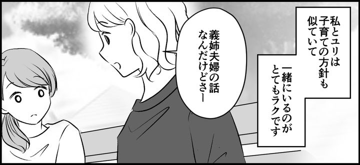 私のまわりのママさんは、おだやかで子どもを叱らない人と子どもを叱りすぎる人との両極端に分かれています。でも、ユリとは子どもを叱るタイミングも内容も似ていて、一緒にいてとてもラクなのです。
