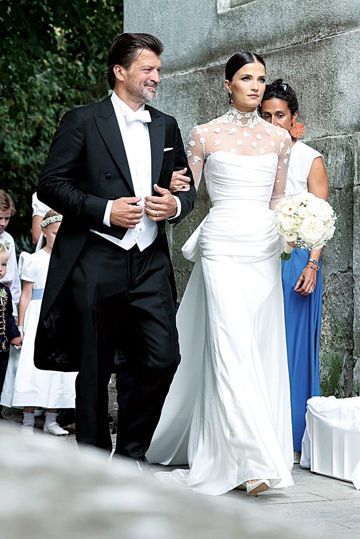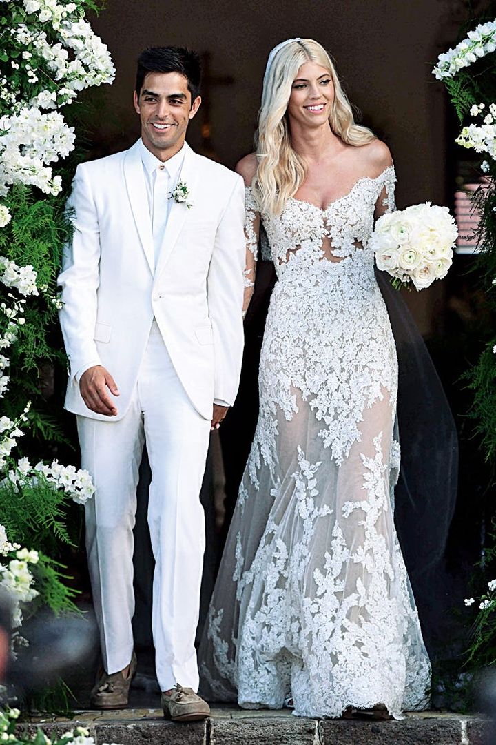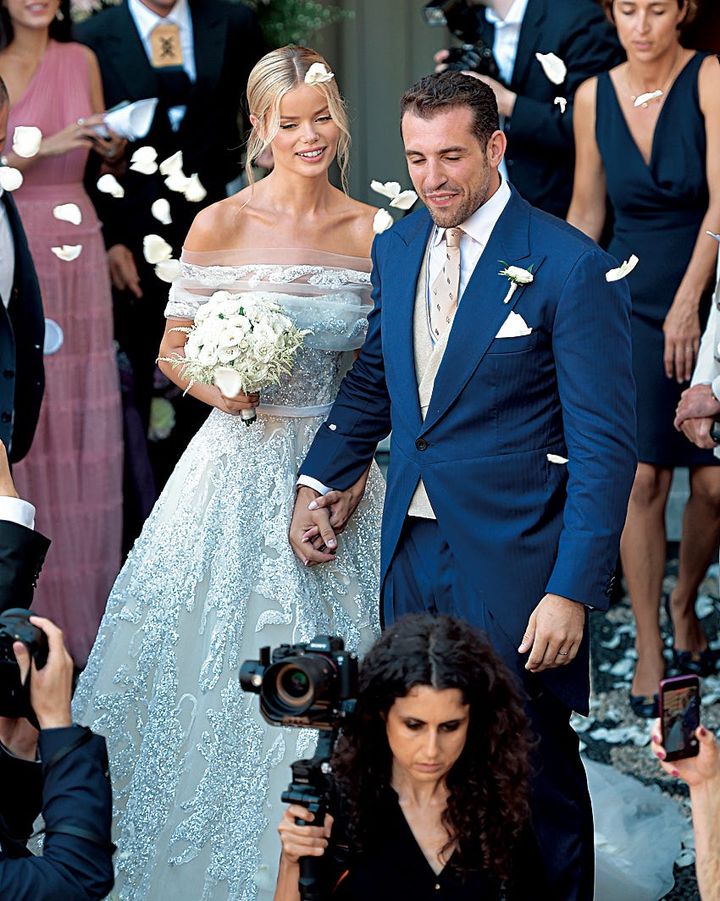 ミア・ローラ2022年3月に結婚したミア・ローラは、デコルテを繊細なレースで覆った軽やかさとエレガンスが融合するスレンダーなデザインを着用。