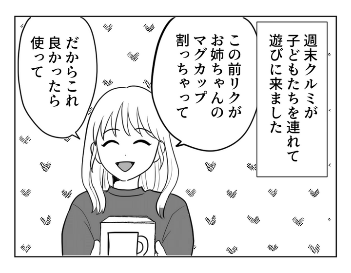 クルミさんの来訪の目的は、やはり壊れたカップの弁償についてでした。そこまで気を遣わなくてもいいのに……と思いつつも、大切に受け取るアンナさん。お母さんについての心配も含めて、一度クルミさんと話し合いたいと思っていたところでした。気になっていた「実家に帰る頻度」についてクルミさんに問いただします。