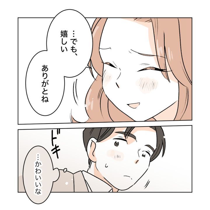 カエデが「でも、嬉しい。ありがとね。」と恥ずかしそうな笑顔を見せると、ワタルはドキッとして(かわいいな)と心の中でつぶやいていました。