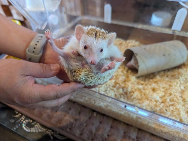 お店の方が飼われているはりねずみさん。 ご厚意で触らせていただきました。 針はやっぱりチクチクだったけどめっちゃ可愛かった~!!