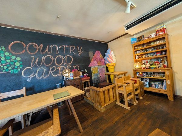 大きな黒板に書かれたかわいいイラストに色んなキャラクターの雑貨が店内にずらり。 とっても楽しい空間です。 ドールハウスも発見!