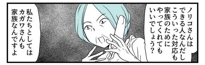 しかも「ノリコさんは普通の家族を知らないから、拒否できるのね」とも感じさせるようなことを言ってきたのです。
