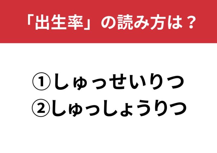 ニュースでも話題にされる「出生率」。読み方が「しゅっせいりつ/しゅっしょうりつ」に分かれることもありますが、どちらか片方が間違いです。あなたは正しい読み方で読めていますか?