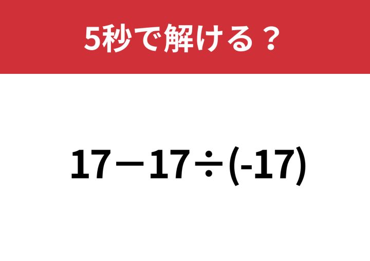 ミスせずに解ける人は少ない?「17−17÷(-17)」5秒で解ける?
