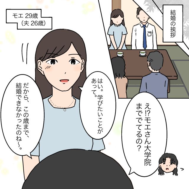 大学院卒業後29歳で結婚した女性のカルチャーショック。失礼な義両親と偉ぶる夫。女に学歴はいらない|ママ広場マンガ