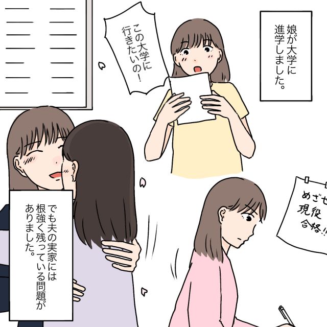 マヒロは第一志望の大学に進学しました。どうしても行きたい大学があると自ら選び、一生懸命勉強した結果です。合格発表の時は、私はマヒロと抱き合って喜びました。でも、夫の実家には根強く残ている問題があるのです。