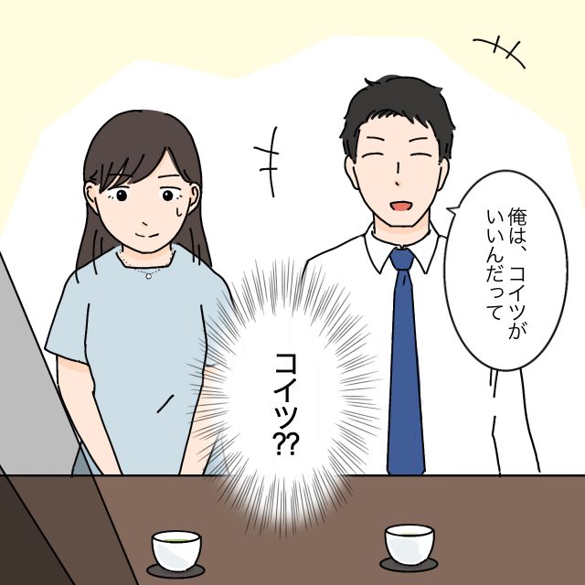 すると、私の隣に座っていたタケルが笑顔で「オレは、コイツがいいんだって。」と自分の親にハッキリと言ったのは良いのですが、「コイツ??」普段は私のことを名前で呼ぶタケルが、急にコイツ呼びしてきたので私は黙って笑顔を作っていましたが、内心では(は?)と思っていました。