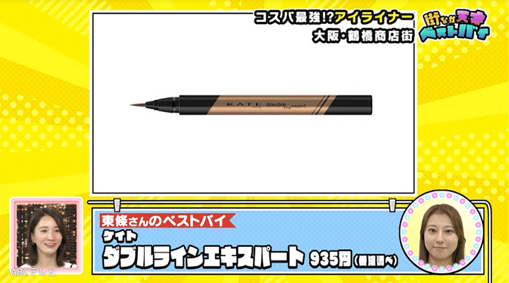 ますみが欲望のままボリューミーな逸品を注文した店は、2025年7月にオープンした韓国発ヨーグルトアイスクリーム専門店・yoajung(ヨアジョン)の日本1号店。30種類以上のトッピングを自由に選べるのが人気の秘密です。この店で天才ピアニストと同席した韓国通女性のベストバイは、KATE(ケイト)のアイライナー。切開ライン、二重ライン、涙袋ラインを自然に表現でき、なんと「全然なくならなくて、コスパがいい!」そうです。
