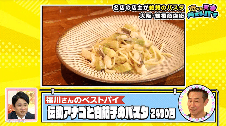 天才ピアニストが訪れた1つは、石焼きビビンバ日本発祥といわれる店・韓国宮廷料理 白雲台 鶴橋本店。同店の店主のベストバイは、宮城県産の伝助穴子と鹿児島産の白茄子を使ったパスタです。出汁が決め手のこの絶品パスタが味わえるのは、近くにあるイタリアン・鶴橋食堂。白雲台の店主は、鶴橋食堂のパスタが大好きで5年も通っているのだとか。