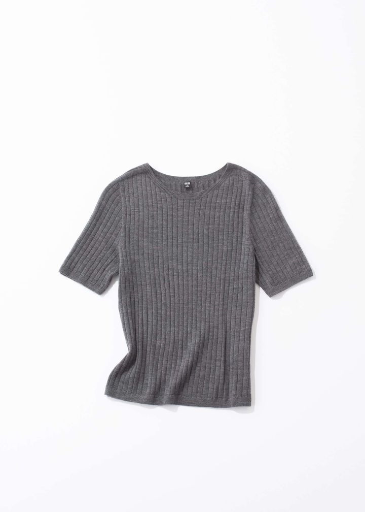 3.ユニクロ・3Dメリノリブクルーネックセーター5分袖