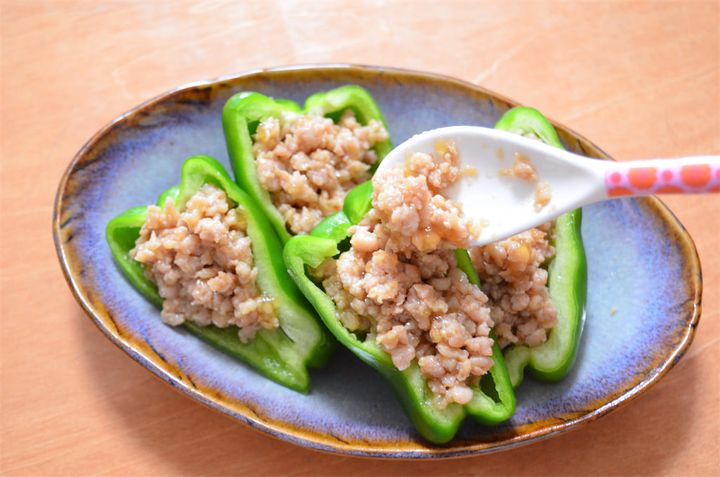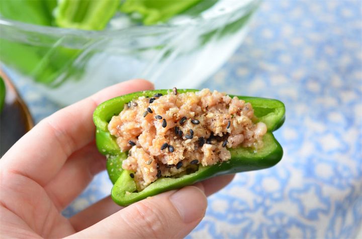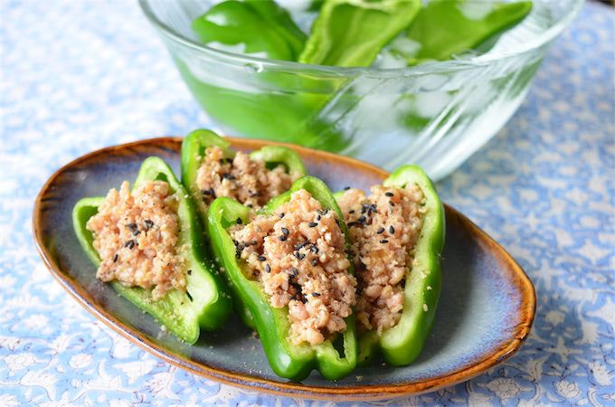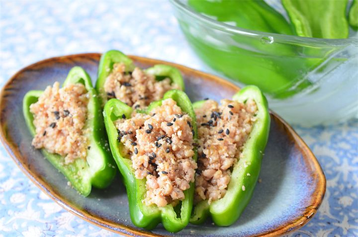 おつまみにもご飯にも!「パリパリピーマンの鶏そぼろのせ」