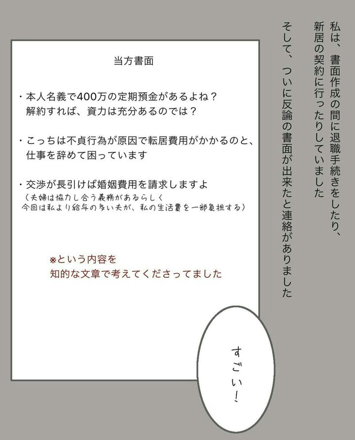 夫側が出してきた書面への反論書がやっとできたまりもは、自分の生活を一新する選択もしていくのですが…?