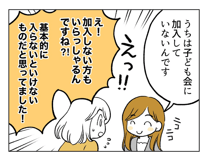 エミさんは物事をよく考えずひとつのメリットで子ども会への加入を決めました。コウジさんにも「よく考えれば?」と言われましたが、そもそもがそういった地域のものは参加しないとトラブルになると思い込んでいたのです。しかしナオさんは穏やかに笑っていて、トラブルとは皆無のように見えます。