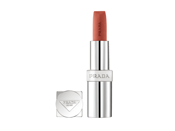 5_モードでフェミニンなピンクベージュ。唇にシルクのように柔らかな輝きを。モノクローム ウェイトレス リップカラー〈スムース ナイロン〉B101 ¥7,260(プラダ ビューティ)