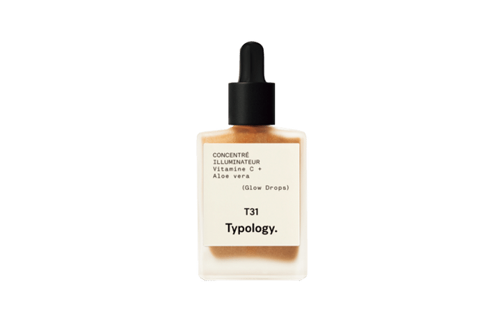 1_骨格を引き立てて、肌そのものが発光するようなツヤと立体感を演出できる繊細なパールを配合した美容液ハイライト。T31 グロウドロップス 15mL ¥5,360(Typology)