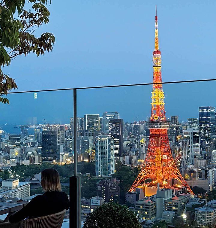 ホテルのシグネチャーレストラン『The Jade Room + Garden Terrace』のテラス席。地上140mから東京タワーを間近に望み、浮遊感も満点だ