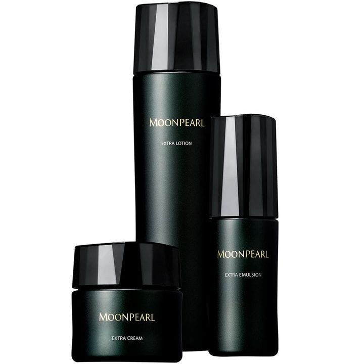 黒真珠のエキスが入っているというミキモト コスメティックスのムーンパール エクストラをライン使いしています。浸透力が抜群で、透明感とツヤが出て、ハリのある肌に。