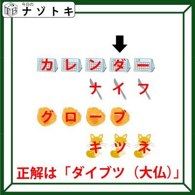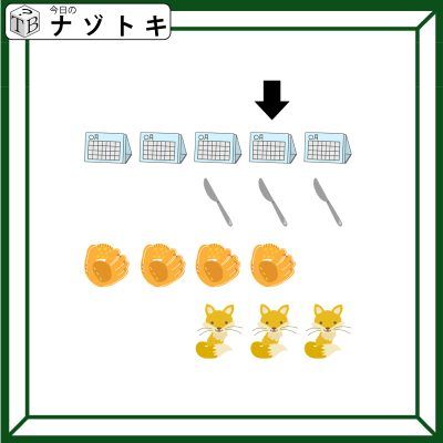 それぞれのイラストは同じものが複数ありますが、これはそのイラストの文字数を表します。イラストは上から「カレンダー」「ナイフ」「グローブ」「キツネ」です。