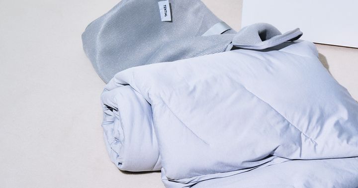 人が心地よく眠れると言われる温度33℃と湿度50%のバランスを追求して、独自の「Sleep Conditioning Technology®」で「快適温湿度」という理想的な寝床内環境を実現し、疲労感を軽減。洗濯ネットにもなる専用バッグに入れて、そのまま洗濯機洗いが可能。アイスグレー ダブル¥25,960(TENTIAL)