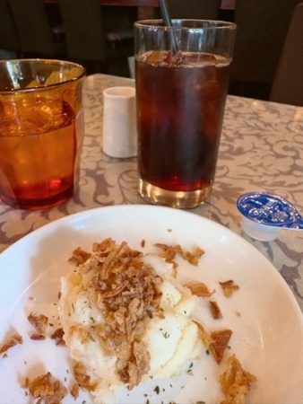 このポテトサラダ、酸味とフライドオニオンの食感、ほんの少し辛味もあり、と~ってもおいしい!(こんなポテトサラダ初めて!)普通の甘いポテトサラダとは違う!