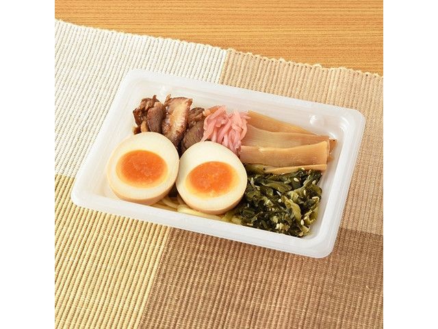 味付けたまご・チャーシュー・メンマ・高菜・豚骨ラーメン風に味付けしたパスタを盛り付けた、おつまみにぴったりな商品です。 ※宮崎県、鹿児島県では取り扱いがございません。