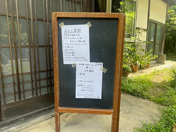 店頭「本日の食材」の案内には、地元産や自家製のジャムなどこだわりがいっぱい