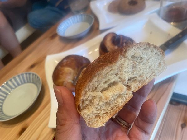 玄関の引き戸を開けるとふわっとパンの焼ける香り。ショーケースいっぱいにパンや焼き菓子が並んでいて、思わずわあっと声が上がります。