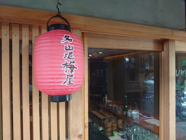 木造長屋通りの中にひっそりと佇んでいる、小さな赤提灯と格子戸のあるお店を探してください。そこが『名山堀 梅屋』です。