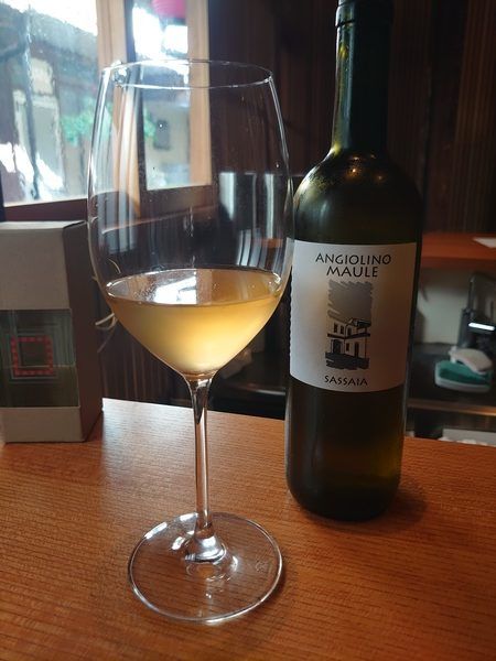 これが噂のオレンジワイン!少し濁りがあってオレンジジュースみたいな見た目が印象的。