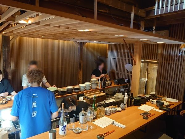 木造2階建てで、1階はカウンター席。店員とお客との距離が近くて、おしゃべりがしやすいアットホームな雰囲気。
