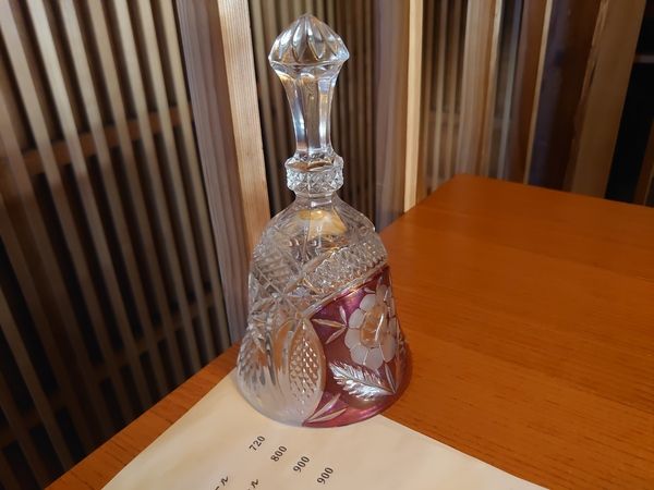 クリスタルガラスのハンドベルを鳴らして、店員さんを呼ぶ仕様となっています。