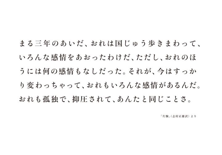 18、19歳の頃、古本屋の百円均一棚で手に取った短編集。当時、ボロアパートで先の見えない閉塞感を持っていた自分にバチッとはまりました。辛い話しか載っていなくて、それでいてどこかロマンチック。意地悪な目線と皮肉なユーモアも含まれている。そして、生身の人間を膾に叩いて、その体が目の前に転がされたような生々しい文章。こんな人間の描き方があるのか、とショックを受けました。特に冒頭の一篇、「片腕」の、死刑囚となる青年が語るこの台詞は書き手としては忘れてはいけない。どんな人間にもその中に心があるんだ、ということ、もしそれを忘れたらもう小説は書けなくなる。アンカーポイントというか、読み返すたび自分の書きたいことの原点に戻れるような気持ちになるのです。